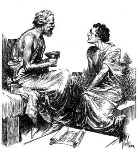 A lo largo de la «década dorada» de los nuevos ricos, los jóvenes vástagos de la clase ascendente se asociaron voluntariamente con Sócrates, «quien en sus discusiones en la plaza pública mostraba una fuerza dialéctica comparable a la de los sofistas, pero admitía a todos en el debate de forma gratuita». […]. Su método era la antítesis de la antilogía sofista, pero también el del dilema trágico que era su fuente: si dos tesis opuestas parecían verdaderas, debían ser examinadas críticamente hasta que una de las dos revelara ser verdadera sólo en apariencia».18Ibidem, pp. 202-203 Sócrates estaba preparando así, tal vez sin darse cuenta, una nueva clase dirigente aristocrática para oponerse a la clase «burguesa» elevada por los sofistas: de Alcibíades a Critias, a Andocides y Cármides.